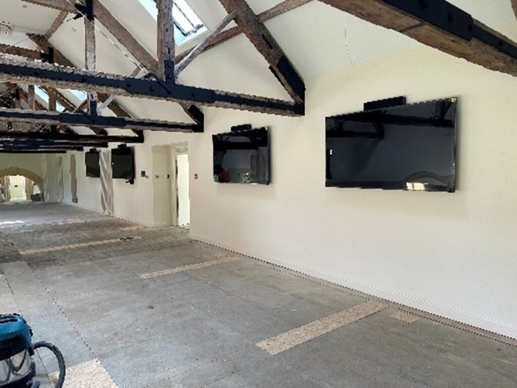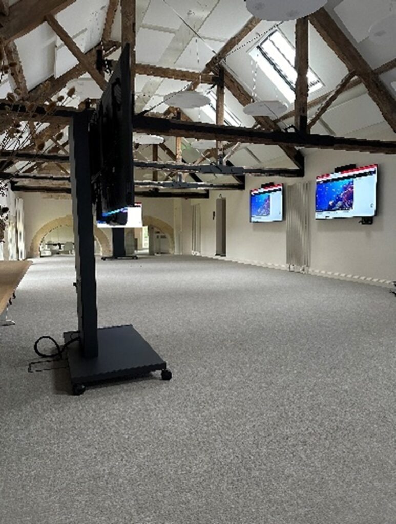 The Stables Area was renovated to create a large meeting space, along with several new smaller meeting rooms and offices. We were responsible for providing and installing modern meeting room equipment tailored to each environment.