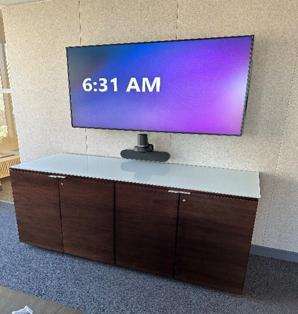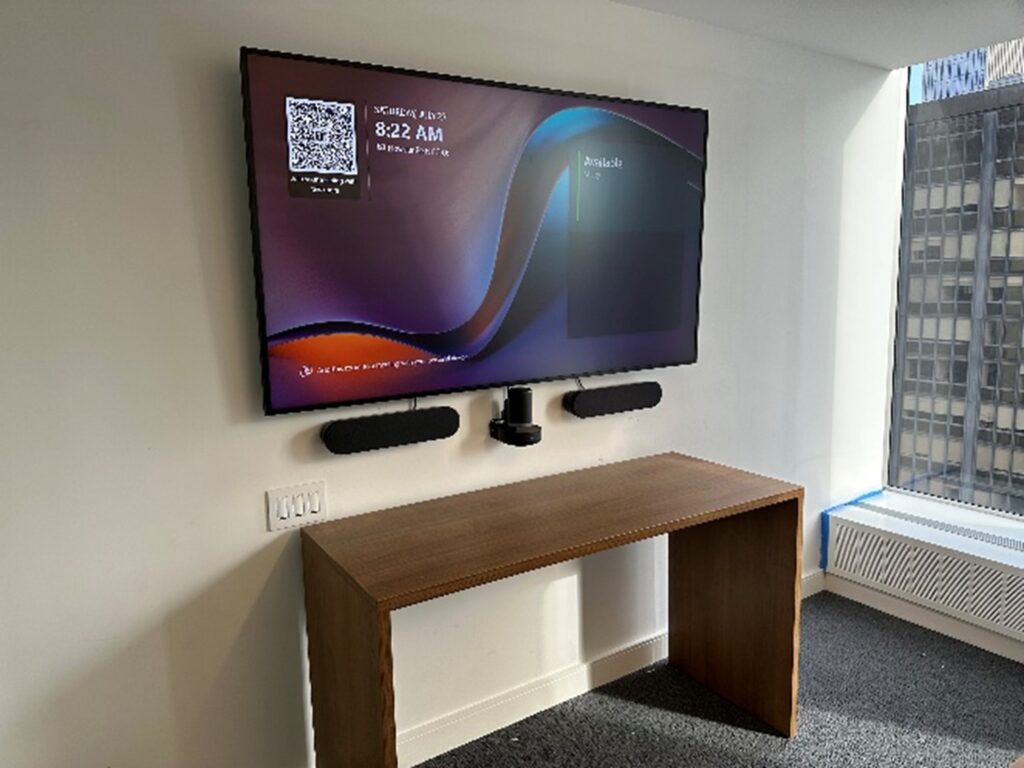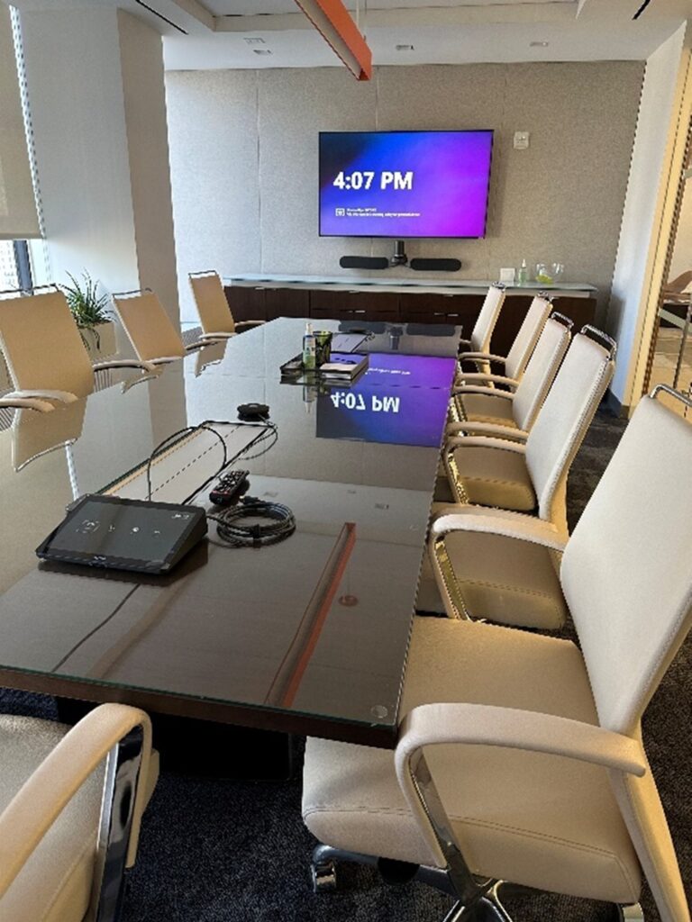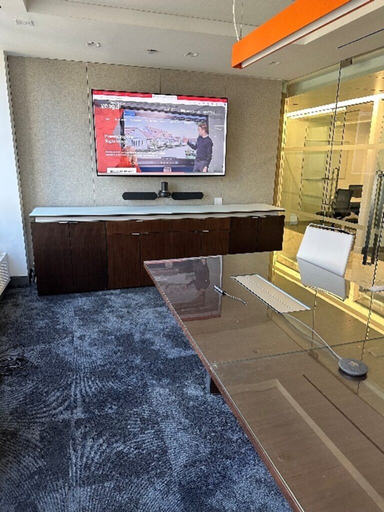 We equipped multiple large meeting rooms with 75” Samsung displays and Logitech video conferencing systems, including PTZ cameras, wall speakers, desktop microphones, and TAP touch controllers for easy connectivity.